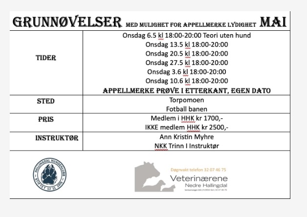 - som NKK klubb har Hallingdal Hundeklubb mulighet til arrangere bronsemerkprøve (appellmerke lydighet)