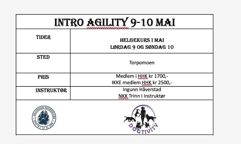- Introduksjonskurs til alle øvelser/hinder i Agility