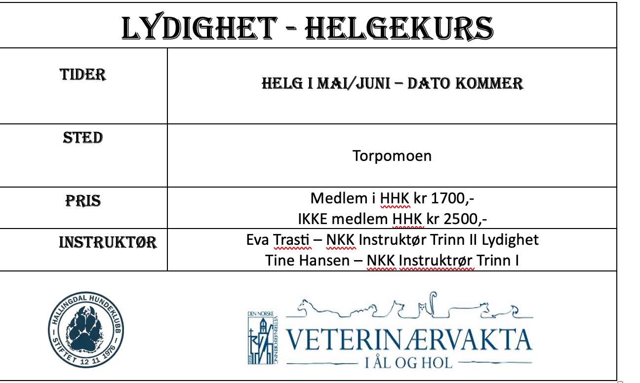 Velkommen på kurs hos oss i Hallingdal Hundeklubb